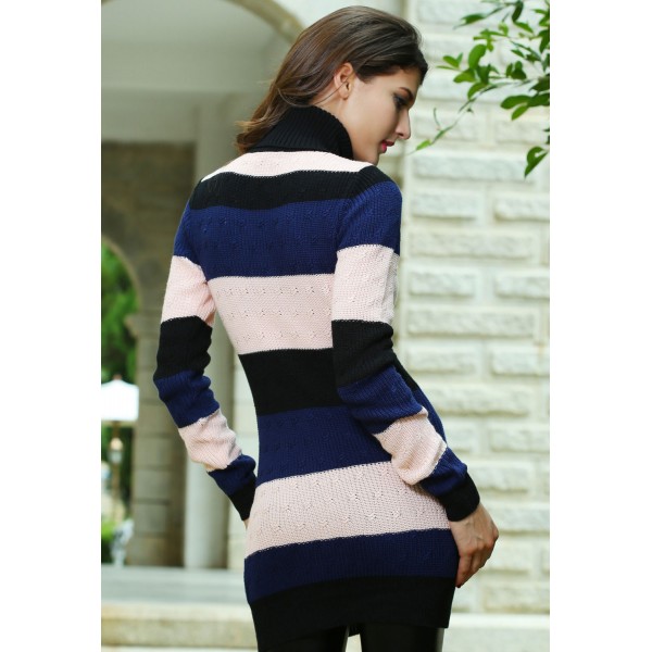 Pletena puli oblekica v kombinaciji modre, bele in črne barve s programi.