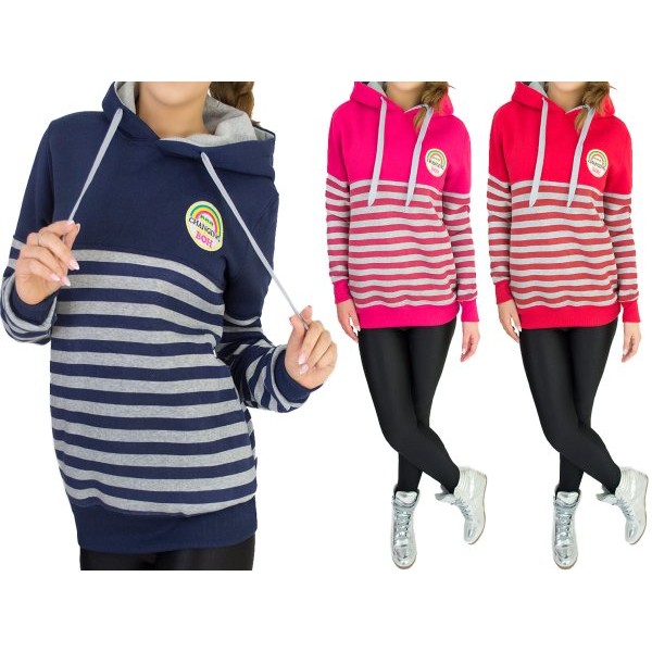 Topel "hoodie" z modnimi črtami. Na voljo v različnih barvah in velikostih.